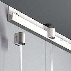 Nu finns det två olika varianter för att använda till din skena. Antingen Perlonlina eller vajer med ögla och S-krok eller Perlonlina med mutter och cylinderkrok, cylinderhållare.